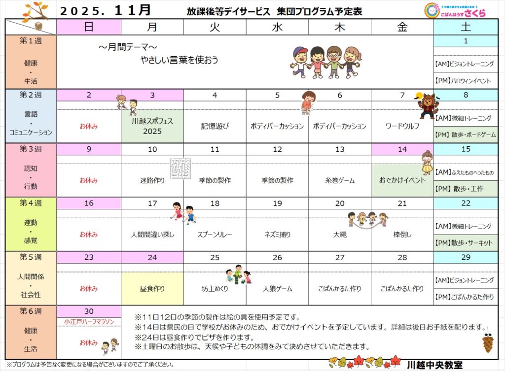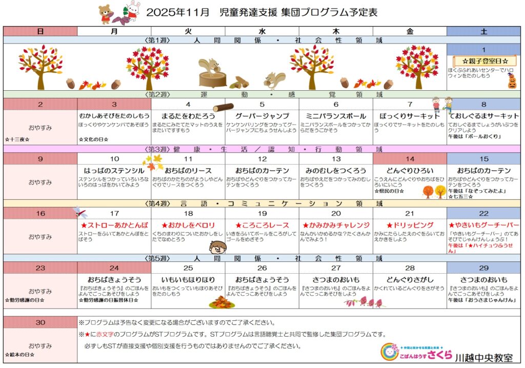 朝晩の気温がぐっと下がり、一気に冬のような空気になってきました。紅葉も進んできているので、今の時期にしか味わえない自然の変化を楽しむためにも毎日の生活リズムを大切に寒さに体を慣らしていきましょう!!