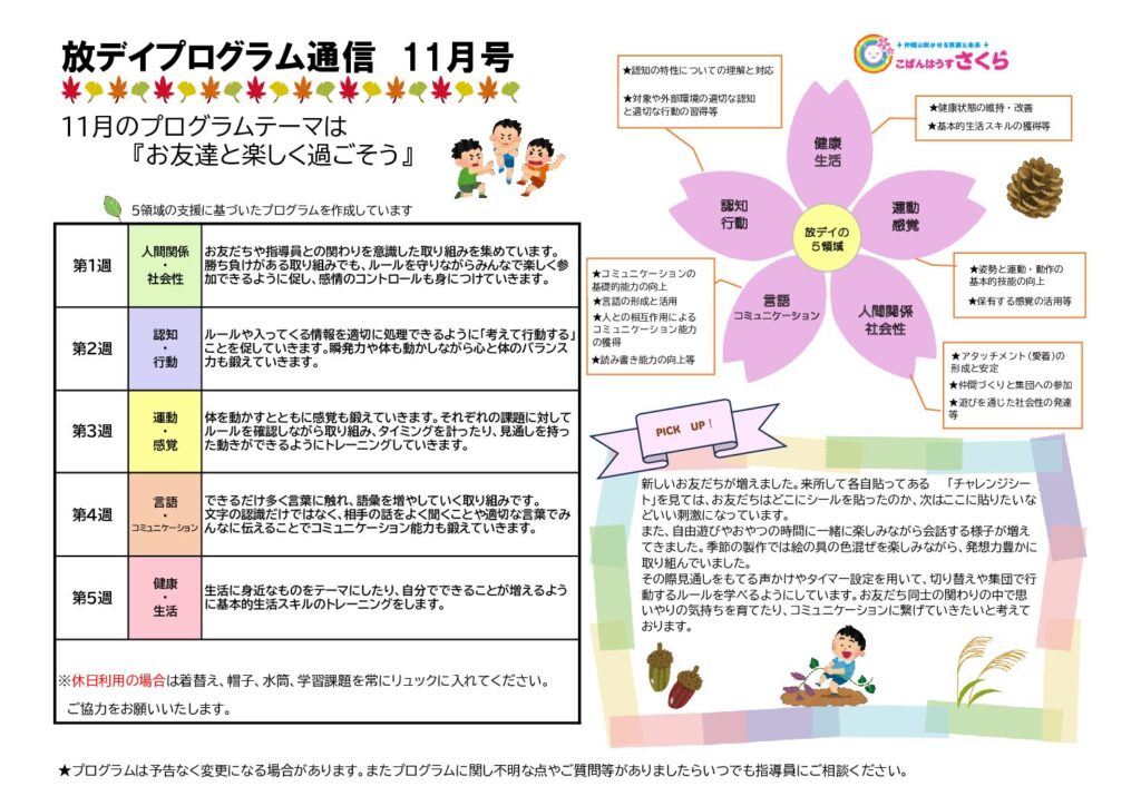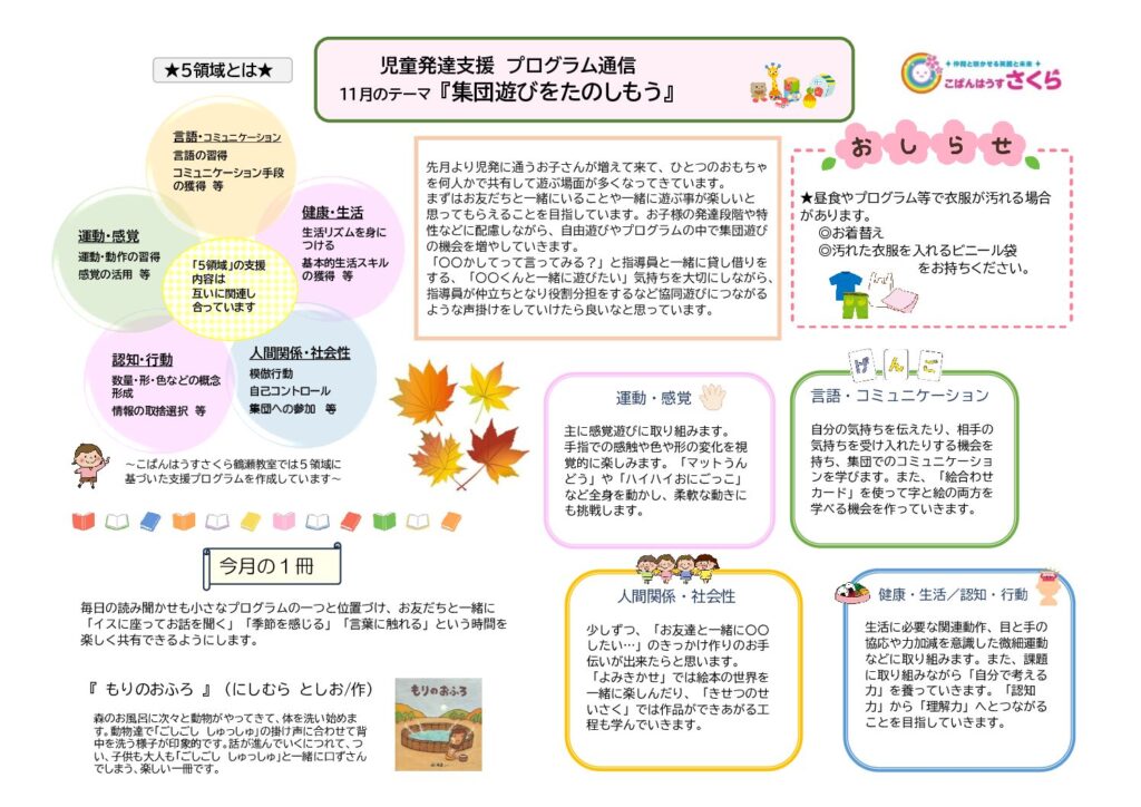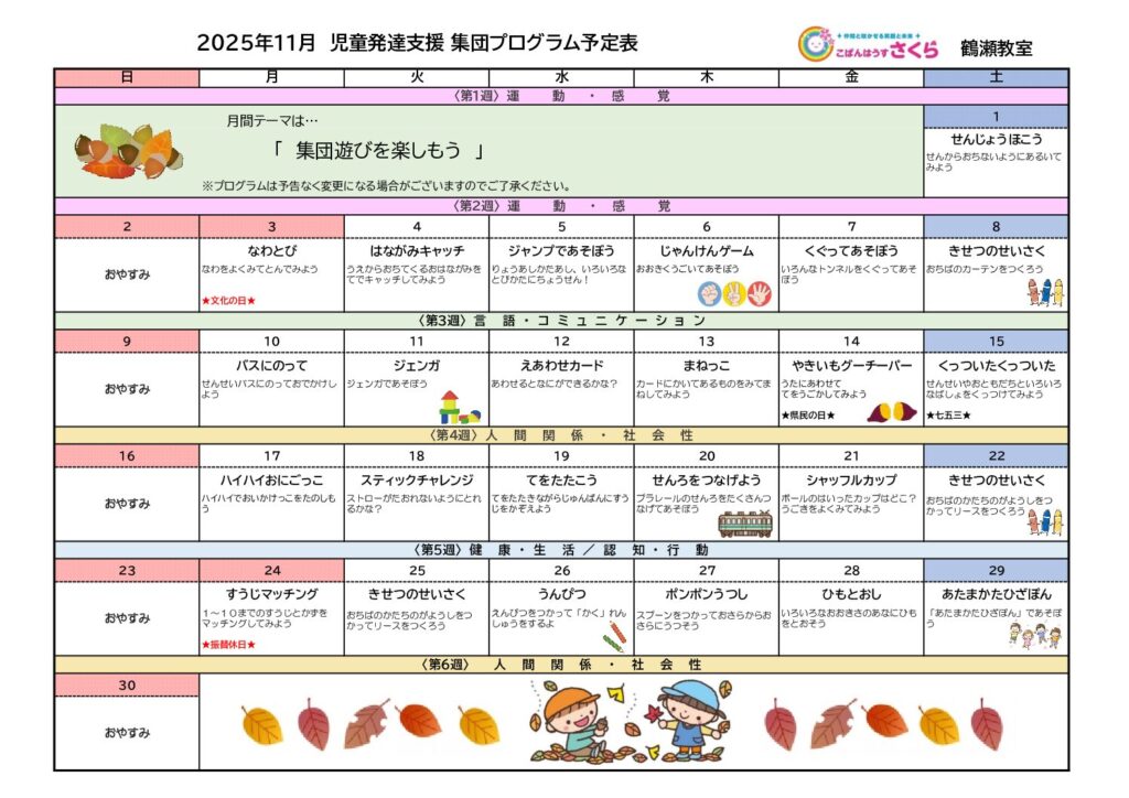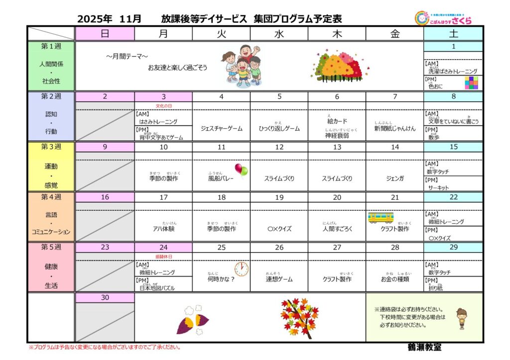 鶴瀬教室11月の集団プログラムです!