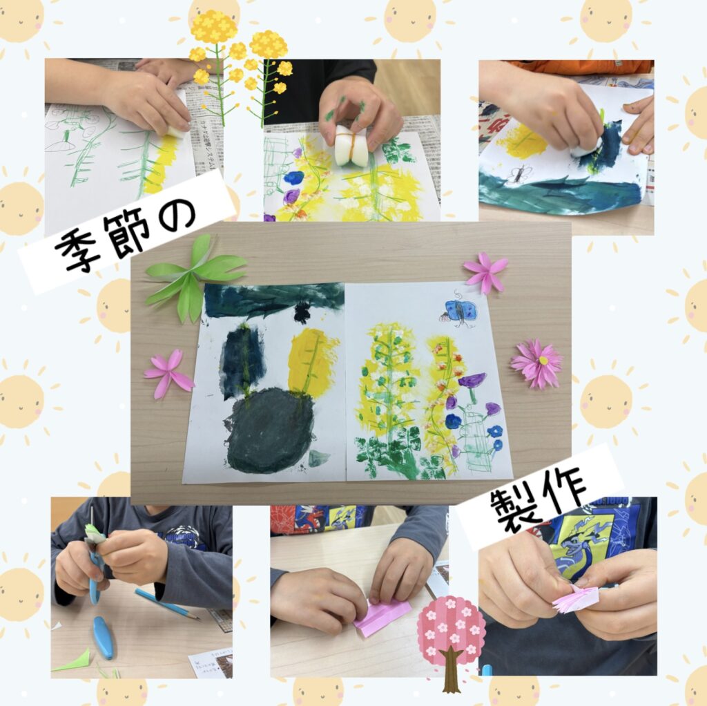 こんにちは!こぱんはうすさくら鶴瀬教室です。 今回は季節の製作の時間に作った「桜」と「菜の花」をご紹介します✨ 桜は折り紙で作りました! はじめにじゃばら折りを5回するのですが、1回で折る幅が意外とバランス… もっと読む »